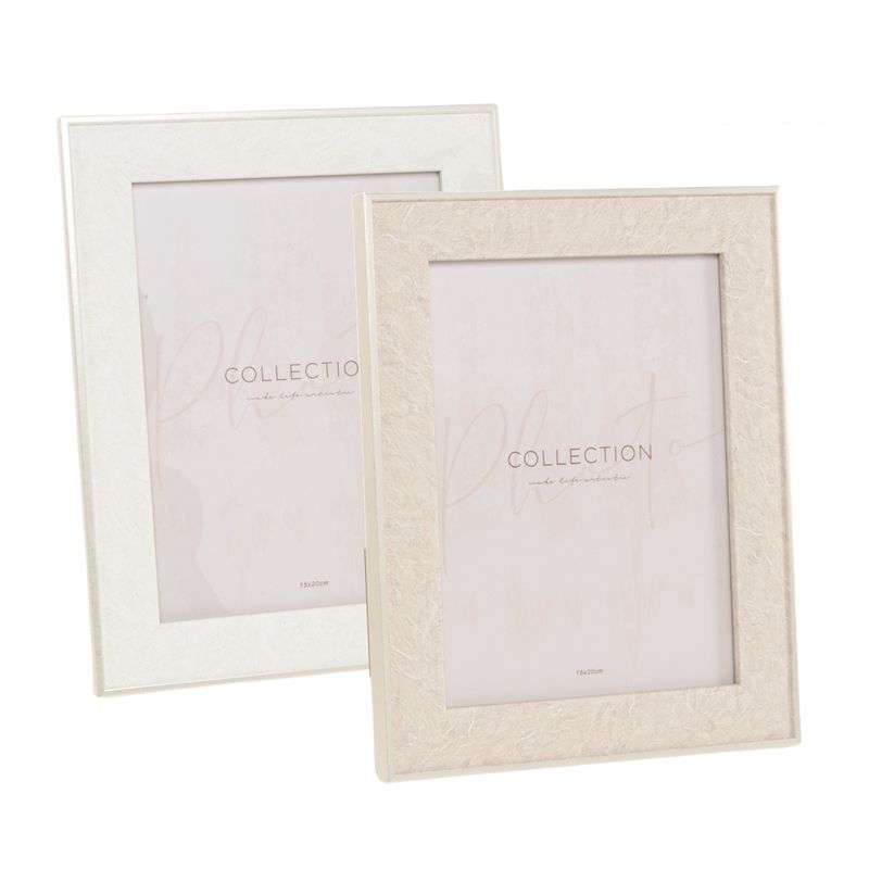 Portafotos para fotografías de 15×20 cm con acabado efecto piedra, disponible en dos colores: beige y blanco. Perfecto para enmarcar tus mejores recuerdos en cualquier estancia de tu hogar.